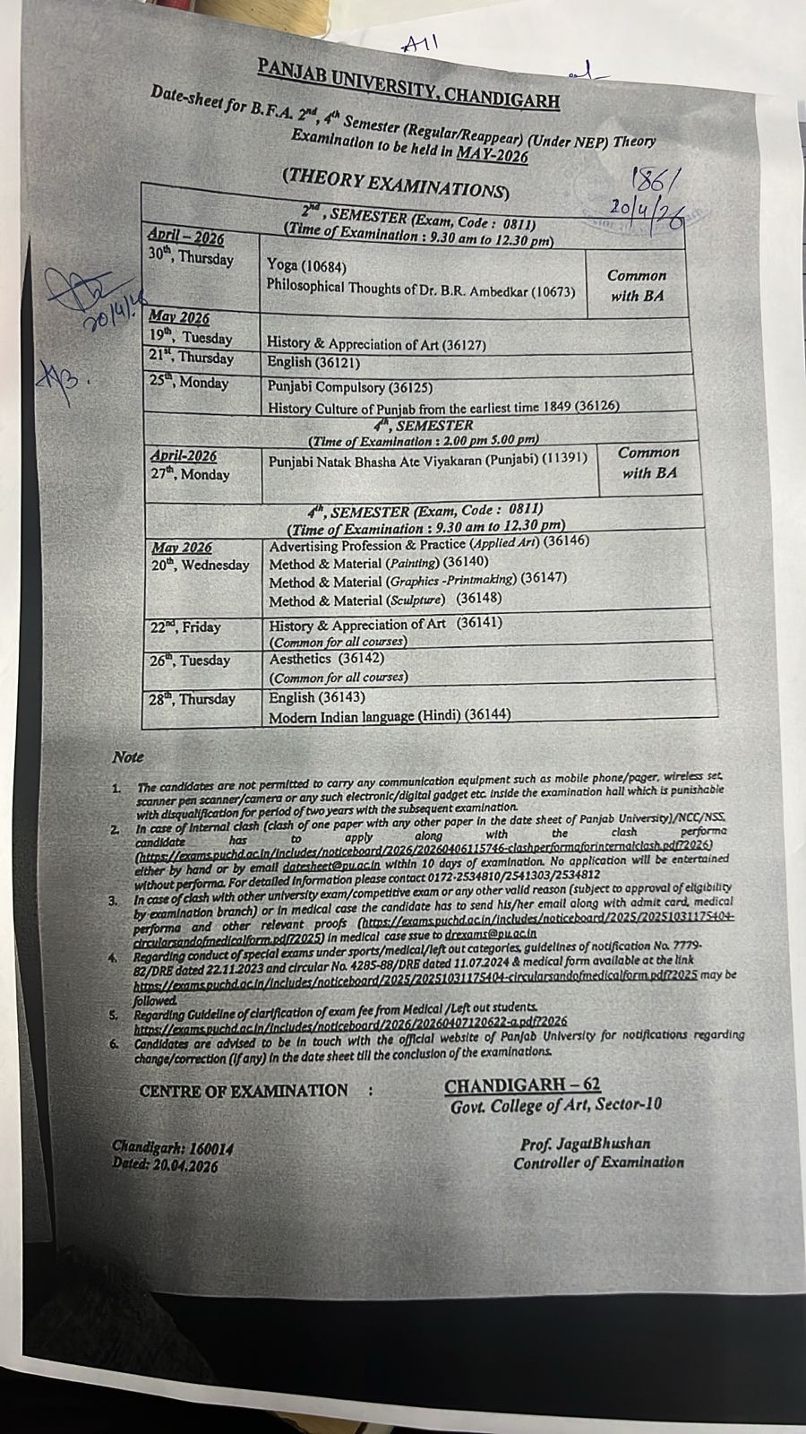 Re-admission Notice. Notice regarding name struck off from the college roll. Revised Sem & Exam Fee notice Jan-Jun 2026 Urgent order regarding semester fees, exam fees and examination form, all classes. Sem & Exam Fee notice Jan-Jun 2026 Regarding Internal Complaint Committee. Books Purchase Notice Examination forms, Semester and exam fees orders DFASA 1, 3, 5 7 Examination forms, Semester and exam fees orders MFA ADFASA 1, 3 Semester and exam fees order of BFA 1, 3, 5 7 Sem & Exam Fee notice Jul-Dec 2025 Vacant seats in All India pool (BFA -2025) Regarding Vacant seat in UT Pool (EWS Gen) BFA-2025 Vacant Seat in UT Pool (BFA~2025) MFA Sculpture Merit List Merit List of ADFASA Applied Art Merit List of MFA Applied Art Merit List Graphics (Rank) Merit List Graphics ADFASA (RANK Merit List of Painting 2025 Merit list of All india pool SCHEDULE OF INTERVIEW FOR MFA/ADFASA-2025 BFA Admission Counselling Notice 2025 Discrepancy list 2025-26 MFA/ADFASA Merit list 2025-26 BFA/DFASA Application form for Registration of MFA/ADFASA 2025-26 Download MFA/ADFASA Prospectus Online 2025-26 Download BFA/DFAD (DFASA) Prospectus Online 2025-26 Notice Environment Road Safety Education and Violence Against Women and Children Drug Abuse" paper will be conducting by online on 13th June, 2025 Notice Regarding No Dues Certificate Practical Date Sheet of BFA/ DFAD and MFA/ADFAD- even semester examinations (all courses) , May 2025 Sem & Exam fee notice 2025 with fine for students who have not paid their fee Notice-1 06 feb 2025 Notice-2 06 feb 2025 Notice-3 06 feb 2025 Sem & Exam fee notice 2025